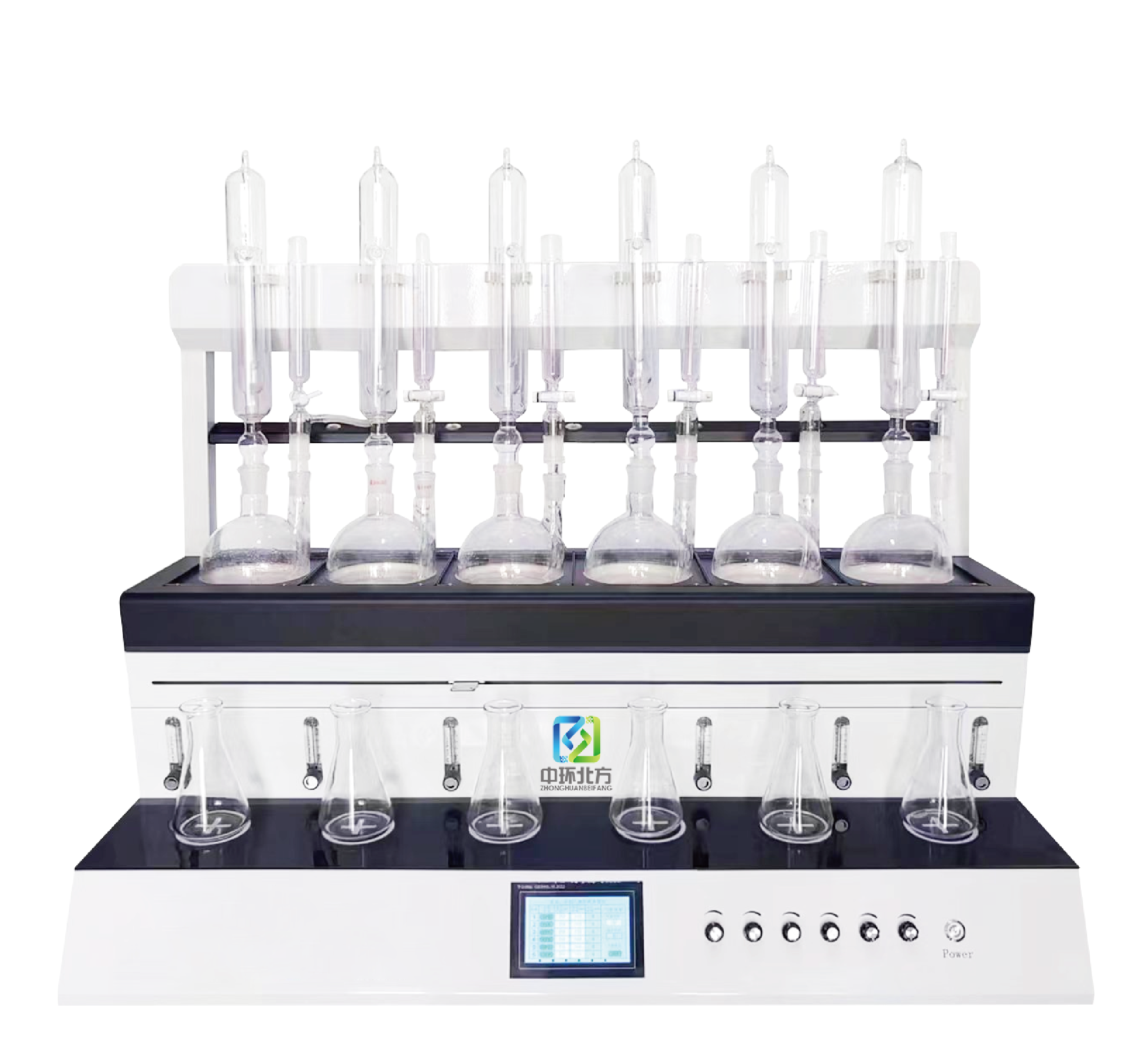 6. 搅拌装置:每组蒸馏单元的接收区设有独立的内置式磁力搅拌装置,搅拌速度可通过电位器调节。